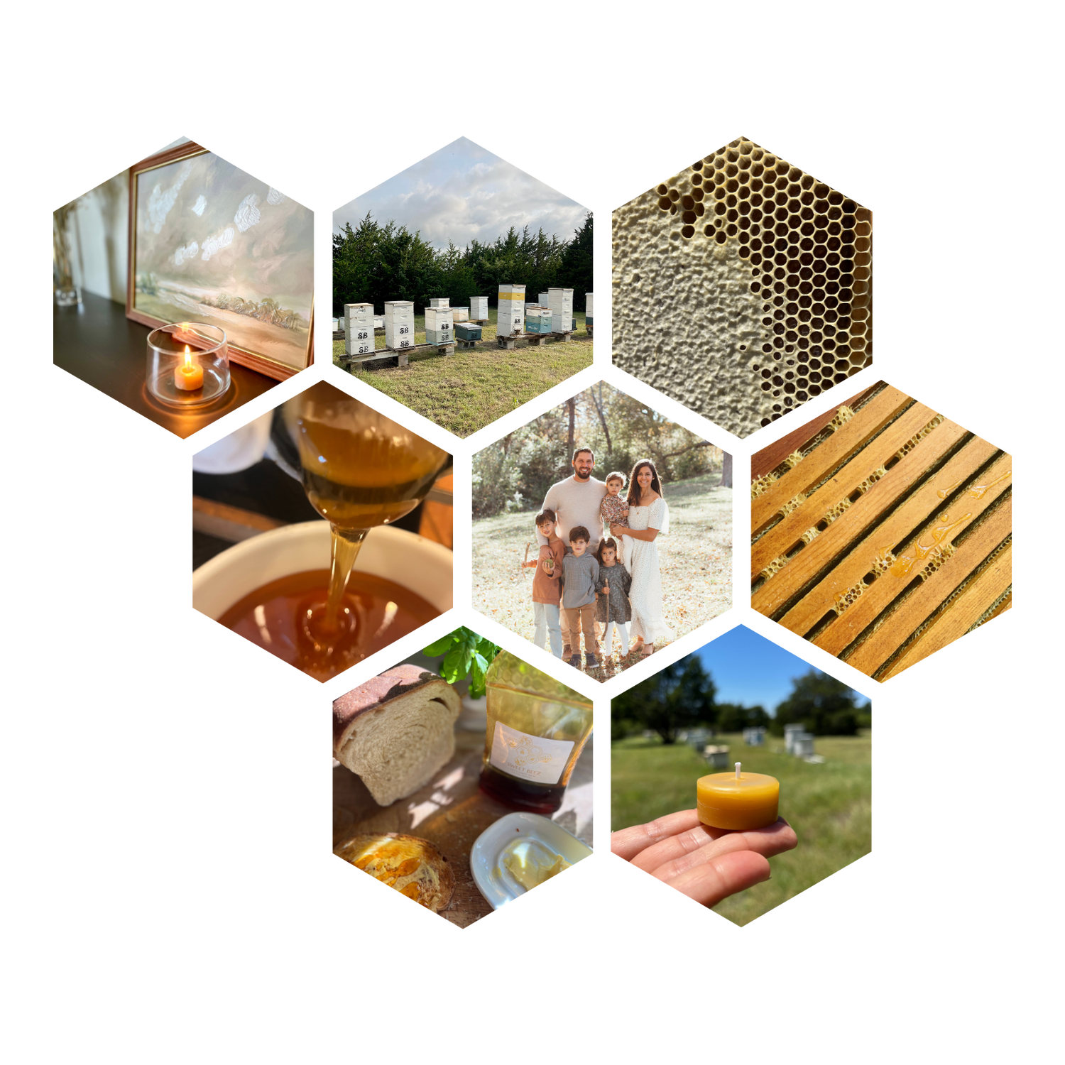 Sweet Beez Farm is a family-owned beekeeping business rooted in the heart of Texas, dedicated to producing raw, local honey through natural, holistic practices. We also sell hand-poured candles made with our own 100% pure beeswax.